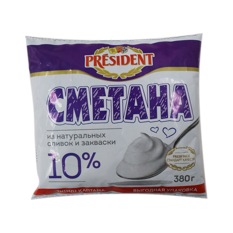 Сметана Президент 10%, 0,38 кг, фасовка в пластиковую упаковку - это высококачественный молочный продукт с нежным вкусом и кремовой текстурой. Содержание жира 10% делает ее идеальным выбором для тех, кто предпочитает нежирные молочные продукты. Упаковка весом 0,38 кг обеспечивает достаточное количество сметаны для приготовления различных блюд или добавления в каши, супы и соусы.