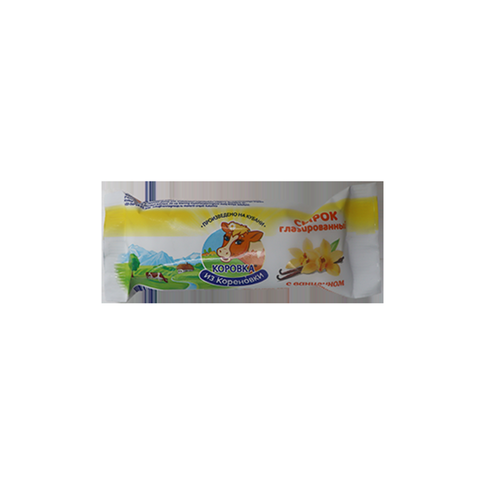 Сырок творожный «Коровка из Кореновки» ванильный, с глазурью, содержание жира 18%, весом 40 г амм - это нежное лакомство, которое сочетает в себе натуральный вкус творога с ароматом ванили и сладкой глазурью. Каждый сырок погружает вас в мягкий и кремовый вкус, принося радость и удовольствие от каждого укуса. Это идеальное угощение для сладкого перекуса или десерта, которое порадует как взрослых, так и детей.
