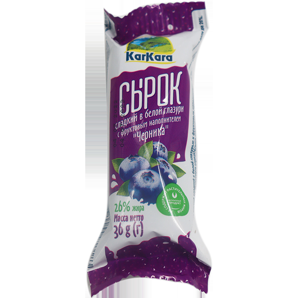 Сырок Karkara в белой глазури с фруктово-ягодным наполнителем и черникой - это изысканное лакомство с нежным вкусом. Упакованный индивидуально, он идеально подходит для перекуса в любое время дня. Насладитесь свежестью черники и нежностью белой глазури в каждом удивительном кусочке.