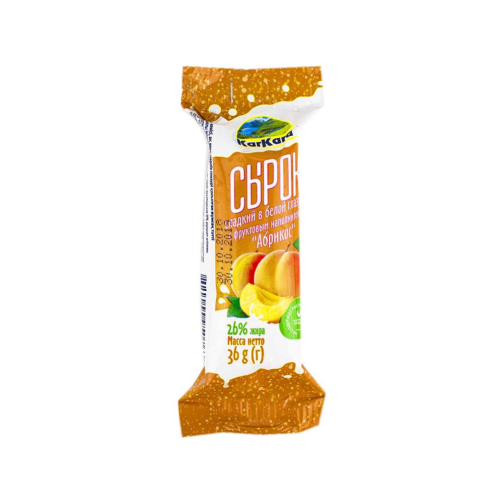 Сырок Karkara в белой глазури с фруктово-наполнителем абрикоса, весом 36 г амм, это нежное молочное лакомство, которое придется по вкусу любителям сладостей. Белая глазурь обрамляет ароматное фруктовое наполнение из спелого абрикоса, создавая идеальное сочетание сладости и свежести. Этот сырок станет отличным выбором для легкого перекуса или угощения в любое время дня.