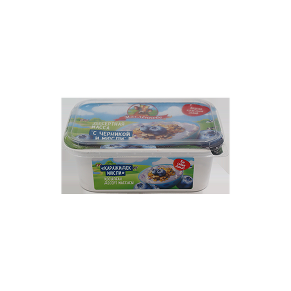 Масса творожная десертная «Маслянково» с черникой и мюсли, упакованная в контейнер весом 350 г амм - это изысканное лакомство, которое сочетает в себе нежный творожный десерт с ягодными нотками черники и хрустящими мюсли. Этот десерт станет прекрасным дополнением к завтраку или утреннему перекусу, придавая вашему дню яркий и насыщенный вкус. Удобная упаковка обеспечивает легкость хранения и удобство использования продукта.