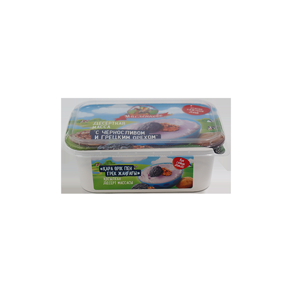 Масса творожная десерт 'Маслёнково' с черносливом и грецким орехом, весом 350 г амм - это изысканное сочетание нежного творога с ароматным черносливом и хрустящими грецкими орехами. Богатый вкус и текстура каждого ингредиента создают неповторимое вкусовое удовольствие. Идеально подходит в качестве десерта или сладкого перекуса. Насладитесь изысканным вкусом массы творожной десерта 'Маслёнково' с черносливом и грецким орехом.