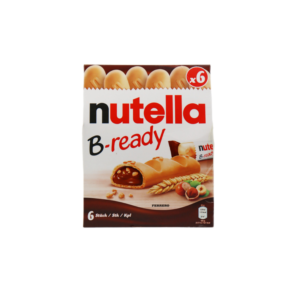 Вафельный батончик Nutella B-Ready – идеальное сочетание вкуса и приятной текстуры. Он состоит из двух вафельных печенек, заполненных начинкой из популярного во всем мире варенья Nutella. В состав батончика входят пшеничная мука, масло пальмовое, сахар, какао, молочные продукты, яйцо и другие ингредиенты.