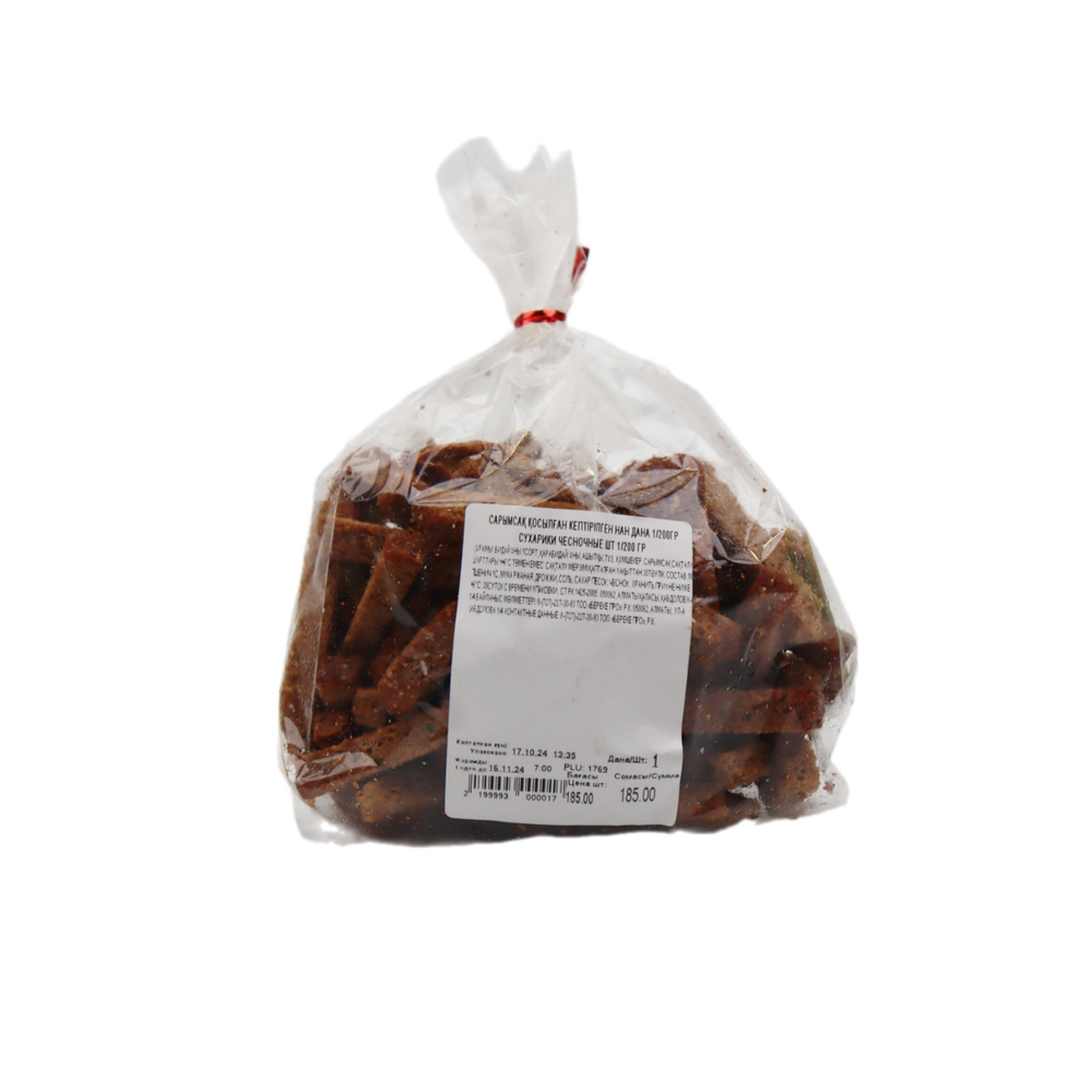 Сухарики чесночные (код 1/200 г) - это продукт, упакованный в индивидуальной упаковке весом 200 г амм. Сухарики, обычно представляющие собой пекарские хлебные кусочки с ароматом чеснока, могут использоваться как закуска или добавка к салатам. Возможный состав включает хлеб, чеснок, масло, соль, и другие ингредиенты.