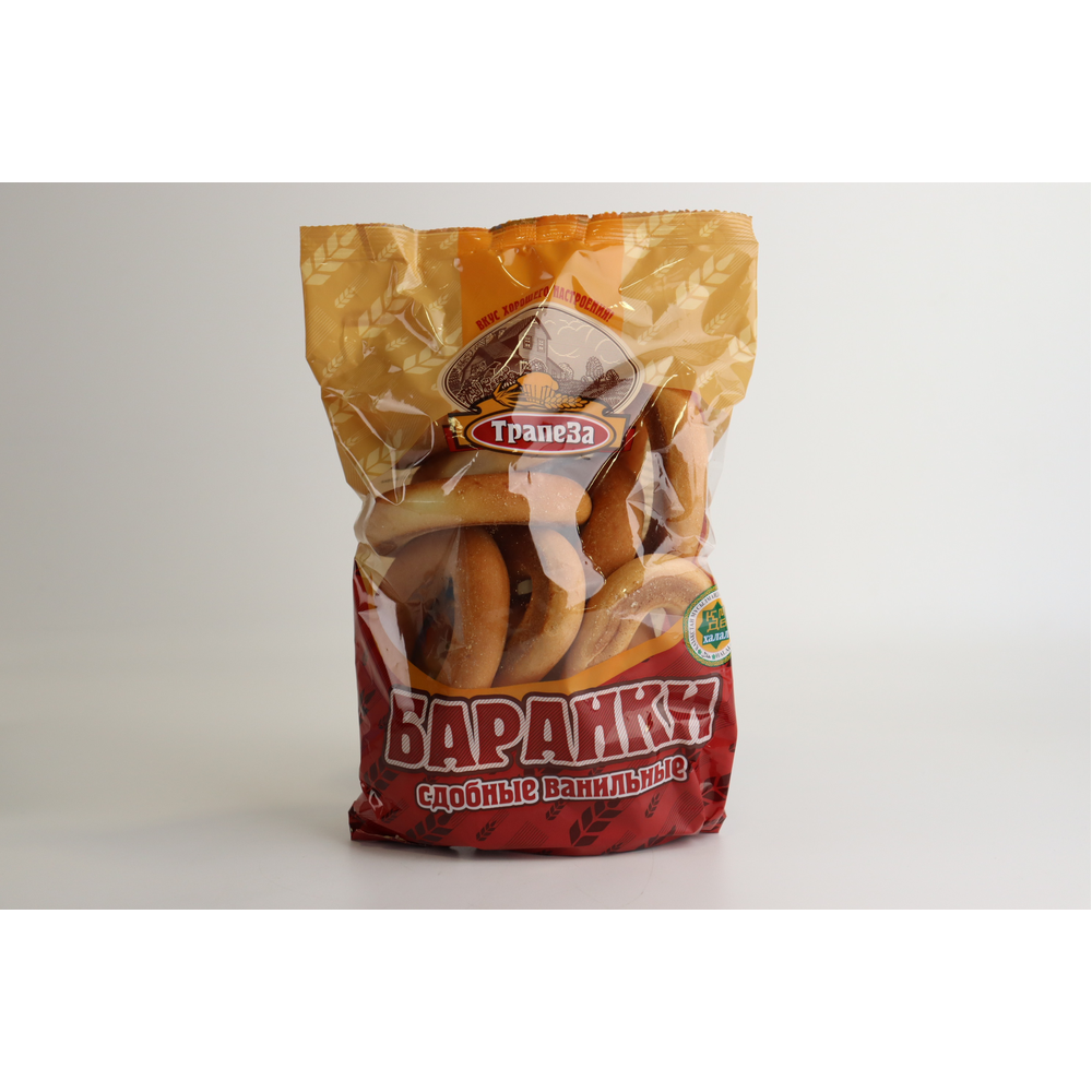 Баранки трапеза сдобные ванильные – это вкусные и ароматные печеньки с ванильным ароматом. Они изготовлены из натуральных ингредиентов и представлены в удобной упаковке по 400 г Состав печеньки включает в себя муку, сахар, растительное масло, ванильный аромат и другие природные ингредиенты.