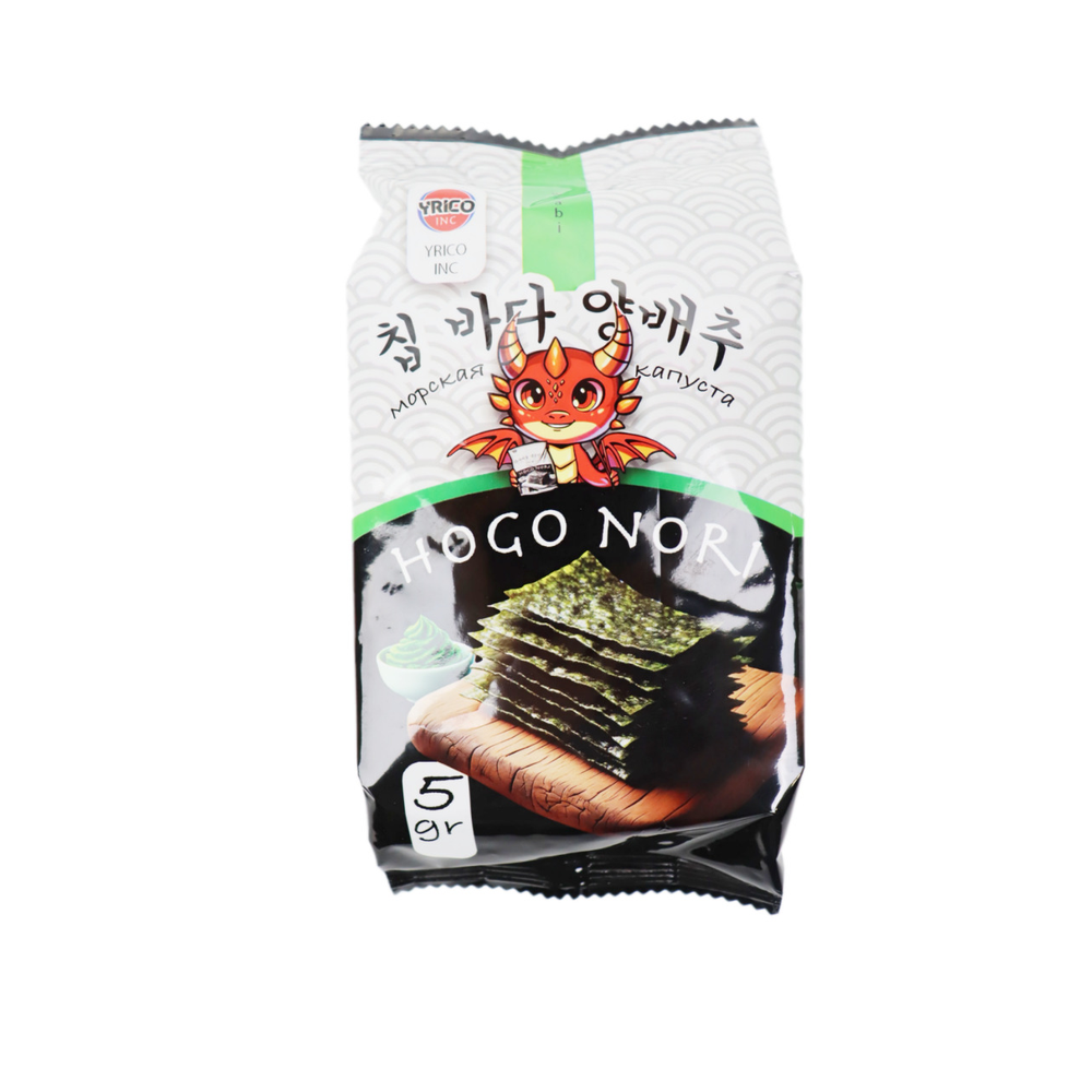 Попробуйте нашу морскую капусту Hogo Nori с васаби! Этот продукт идеально подходит для создания суши, роллов и других японских блюд. Просто добавьте его в начинку или оберните им рис - и ваш ужин станет настоящим шедевром! Попробуйте сегодня и ощутите вкус Японии прямо у себя дома.