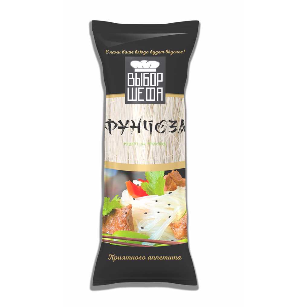 Фунчоза Выбор Шефа в упаковке 400 г амм - это разновидность азиатской лапши, изготовленной из крахмала бобов мунг, картофеля, или кукурузы. Она также известна как стеклянная лапша из-за своей полупрозрачной текстуры после приготовления. ### Способы использования фунчозы: