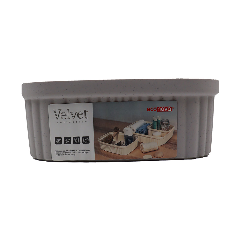 Лоток Velvet поможет в организации хранения умывальных принадлежностей на полках и в шкафу ванной комнаты. Несколько лотков без крышки одной высоты удобно ставятся один в другой или рядом. Размер: 19х15х7 см. Объём 1,45 л - Выполнен из надёжного безопасного полипропилена, давно зарекомендовавшего себя в быту. - Не боится влажности и перепадов температур. Легко мыть.