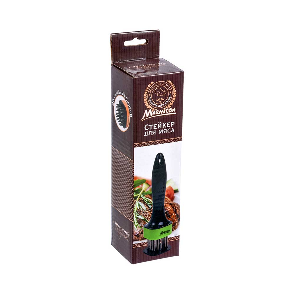 Нежные и сочные стейкеры для мяса Marmiton - идеальный инструмент для приготовления вкусных блюд на гриле или сковороде. С их помощью вы сможете равномерно прожаривать мясо, сохраняя его сочность и аромат. Шипы из нержавеющей стали обеспечивают надежное крепление продукта, а удобная ручка делает использование стейкеров максимально комфортным. Попробуйте приготовить на них сочный стейк или аппетитные шашлыки - и вы точно не сможете им отказаться! Добавьте стейкеры для мяса Marmiton в свою кухонную коллекцию прямо сейчас и наслаждайтесь великолепным вкусом каждого приготовленного блюда.